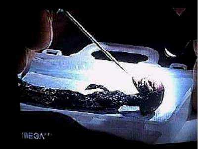 The opinions from different veterinarians and health specialists in Chile are sharply divided, some point out that the alleged humanoid creature is nothing more than part of the local wild life, mentioning the possibility that it is a wild cat, or perhaps a so-called monito de monte or mouse opossum (Dromiciops Gliroides), which is a marsupial commonly found in Chile and Argentina. Other health specialists assure that the creature does not fit the descriptions of any local animal. Doctor Mario Dussuel conducted a preliminary analysis on the tiny carcass. According to Dussuel, the 3-inch long carcass indicates that is neither a fetus, nor the remains a feline. "I took a good look at the tiny mummified body. It is very strange, very small, very light, but what caught my attention is its slanted eyes. Besides its unusual physical appearance, what makes it different than any animal from the area is the length of its fingers, and how thin its neck is", he explained. Dussuel also mentioned that in order to proceed with any further studies, it is necessary to conduct an electronic microscopic analysis from tissue samples, and perhaps obtain a DNA sample from the tiny carcass. "It is very important that we conduct these tests. Without studying the tissue and DNA samples, we cannot make a distinction between different animal species, or if its biological composition could somehow be similar to that of a human fetus. This is indeed an extraordinary case, and it may resonate nationally and abroad" he said. On the other hand, in an interview with investigator Cristian Riffo, Doctor Arturo Mann, a specialist from the University of Santo Tomas assured that the alleged creature is nothing more than a mouse opossum, a small mammal that inhabits the Valdiviana Forest in Southern Chile. "The carcass does not appear to be a human fetus. During my preliminary analysis, I concluded that this small mammal belongs to the local wild life. By looking at its long fingernails, it is possible that it used its hands to dig. Its physical characteristics are similar to those of a monito de monte (mouse opossum). This particular species is related with marsupials from Australia, but the Chilean relatives are much smaller. These are nighttime animals. They eat insects and small fruits," he said. Basing his study on wild life publications in the University of Santo Tomas, Doctor Mann claims that he is 90% certain about his conclusion. He also explained how the mouse opossum, found in Concepcion could have died. It is very possible that this mammal was very weak. "Marsupials in Chile hibernate and become drowsy during the winter. When these marsupials consume and gather enough food, they begin their hibernation in April or May, and it lasts until August or September. At the end of their hibernation period, they are very weak because they have not consumed any food for months. In addition to that, there could have been unfavorable climatic conditions for this marsupial to survive," he said. However, other veterinarians are not so sure that it may be "just a mouse". In order to demonstrate that the alleged creature found in Concepcion was not the mouse opossum, three veterinarians went on national television to express their disagreement. The Megavision Television Network invited the young veterinarians on the show titled "The Law of the Jungle," on October 26 of 2002. Each veterinarian was specialized in different fields; one was specialized in insects, another one in wild animals, and the last one in domestic animals and pets. The wild life specialist (pictured left) claimed to have studied the mouse opossums of Valdiviana and he assured that the dead specimen does not correspond to that particular species type. During their television appearance, the veterinarians conducted a preliminary analysis of the carcass. "The lower jaw does not present the typical characteristics of a mouse opossum; it does not have the small pointed teeth. The cranial formation is at least double the size if compared with those particular mammals. Unfortunately, the carcass is badly decomposed and we cannot examine the upper jaw. And strangely enough, now that I just mentioned how decomposed this specimen is, let us not forget that this is highly unusual; I have never seen a body so decomposed after being dead fro only 25 days," said one of them. "Furthermore, the mouse opossum has a tail. This specimen does NOT have a tail and does not present any trace of evidence that it had one at some point in time. Another remarkable difference is the fact that its body does not have any traces of hair; the only hair we are able to find is on what appear to be its eyebrows. Mouse opossums have a very thick coat of hair throughout the body." They also pointed out to obvious physical aspect differences, such as the long and thin torso, as well as how the slanted eyes are so much larger than the ones of a mouse opossum. Another veterinarian referred to investigations conducted by Jaime Ferrer in Northern Chile; he compared the carcass to eyewitness descriptions mentioning the "Chupacabras." Several references were made to different foot tracks found by Ferrer, as well as articles and photos posted on Rense.com and the Miami UFO Center website. They announced that the final results of their analyses will be revealed within days. Stay tuned.